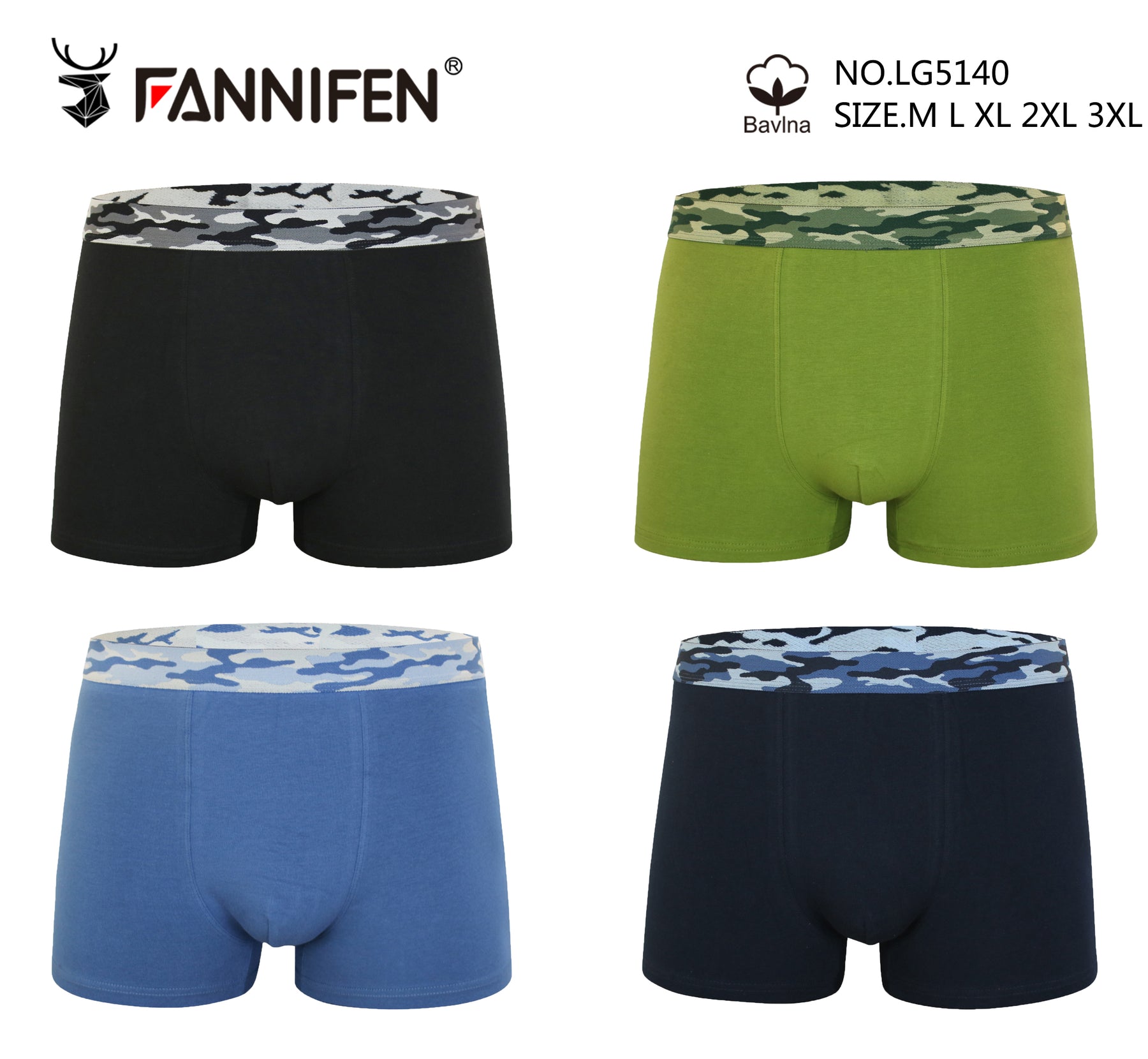 TEEN Cotton Classic Soft boxer shorts CAMOUFLAGE LG5140 - 4 pieces per pack